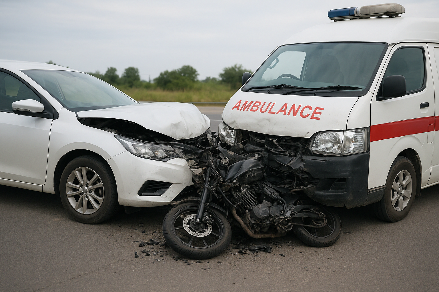 Thank you for reading this post, don't forget to subscribe!When the accident occurred, the victim, 55-year-old Bhim Singh, who worked at a gas station, was riding a bike. Both the ambulance and the bike were severely damaged in the collision.
